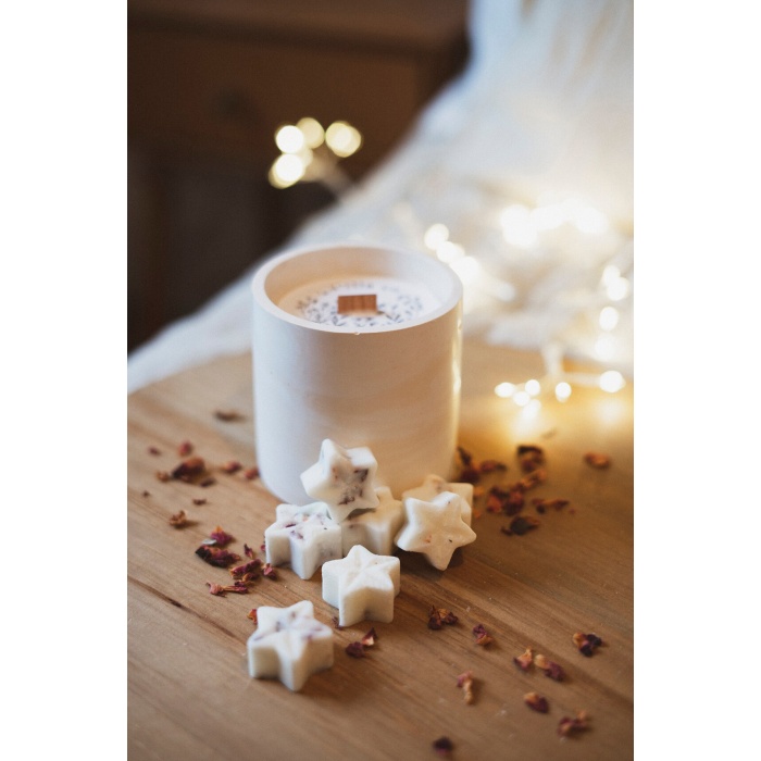 Vanilya Kokulu Ahsap Fitil Dekoratif Kutuda Soys Wax Mum - Pudra