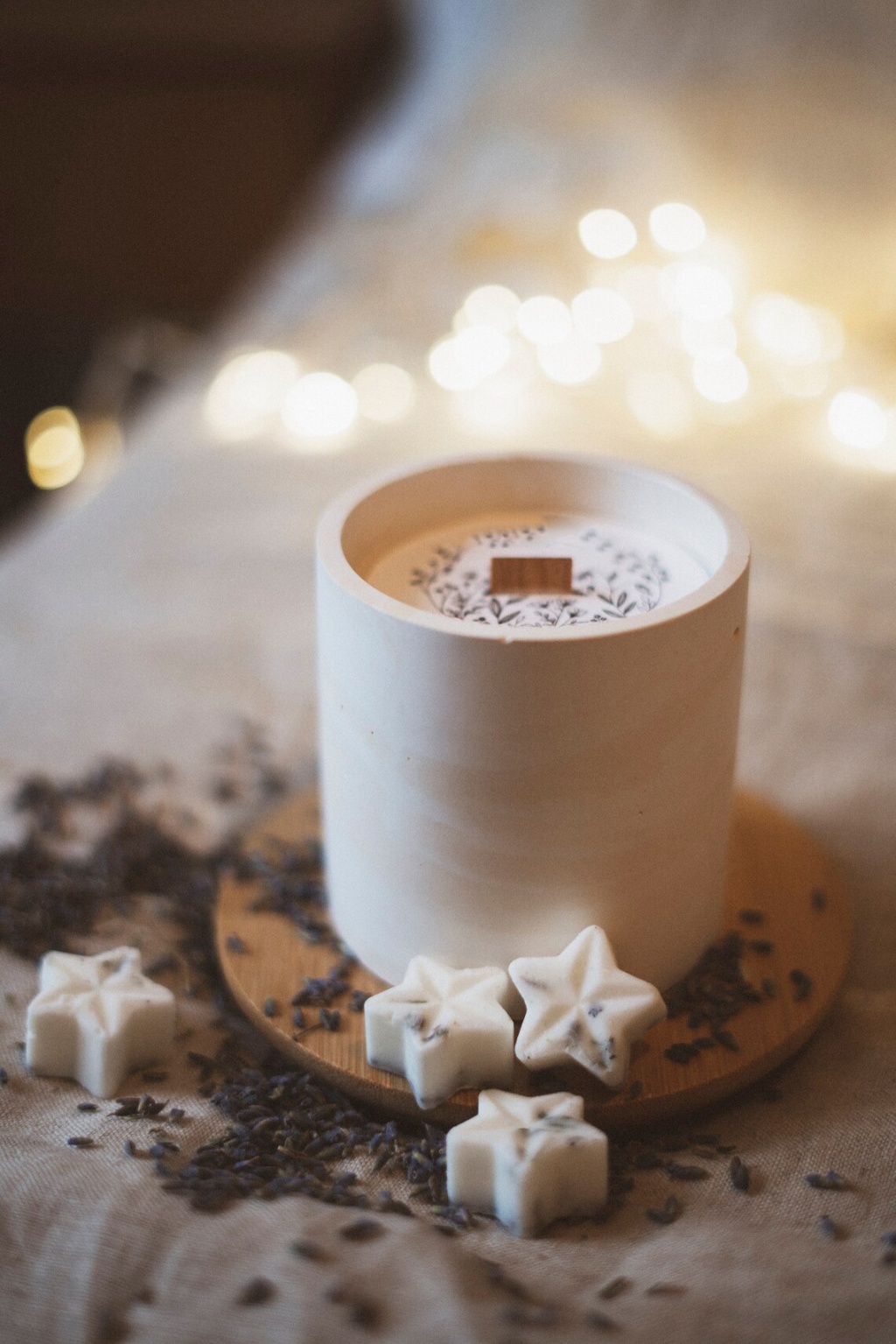 HİKWO - Soya Wax LAvantalı Kase Mum - Beyaz Kuvars Taşlı Aromaterapi Mumu