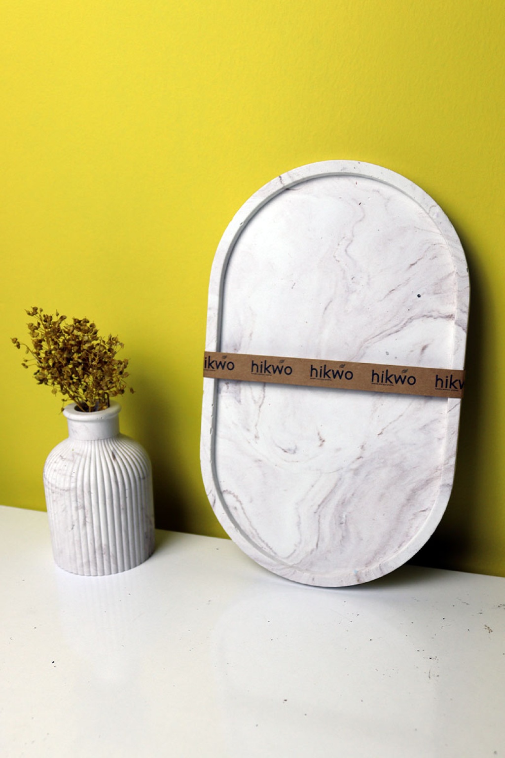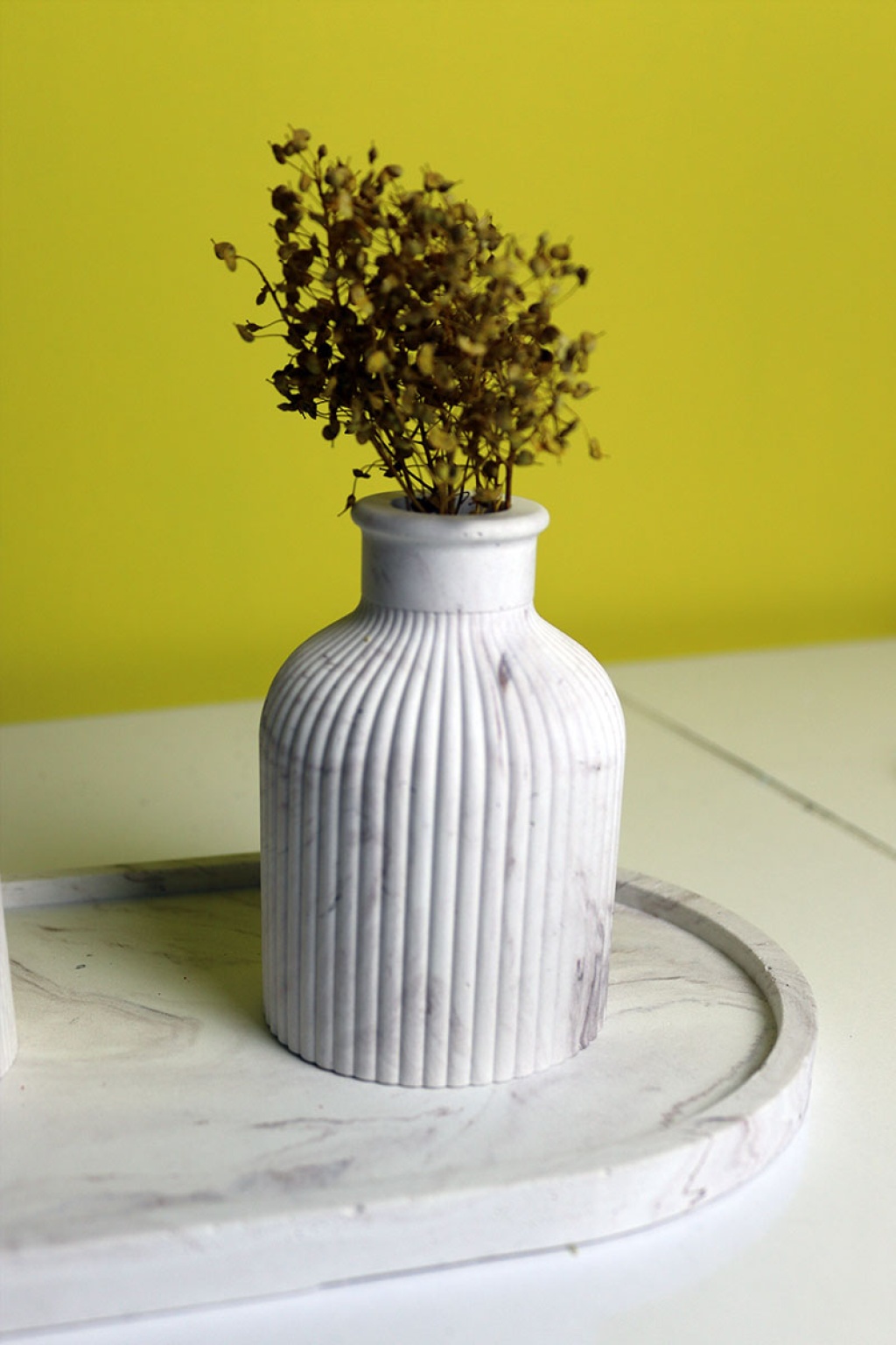 Dekoratif Mermer Desenli Tepsi ve Vazo Seti