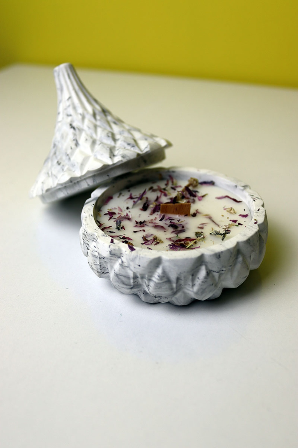 Özel Tasarım Dekoratif Soya Mum - Kokulu Mum - Mermer Desenli Mum - Sandal Ağacı
