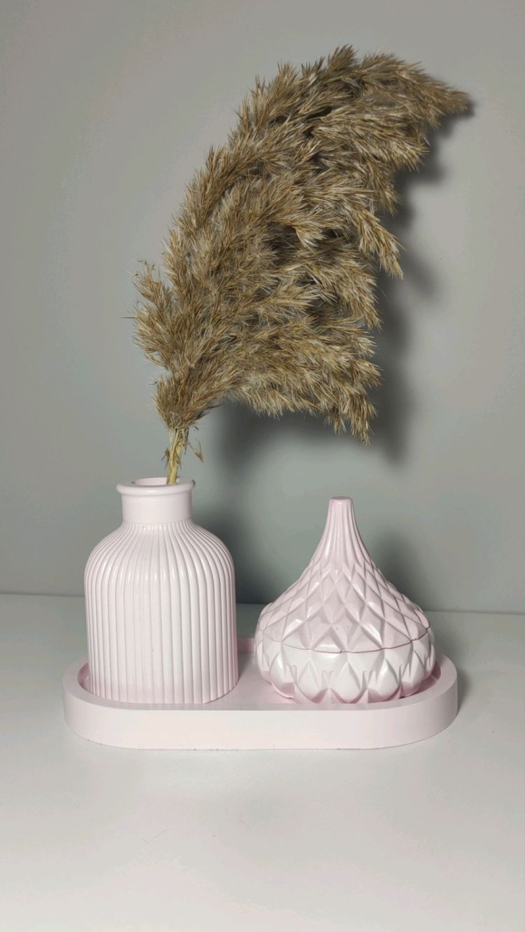 Pembe Kapaklı Dekoratif Kutu ve Vazo Seti