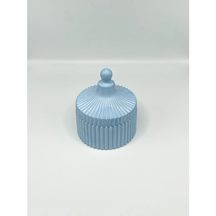 Vanilya Kokulu Ahsap Fitil Dekoratif Kutuda Soys Wax Mum - Mavi